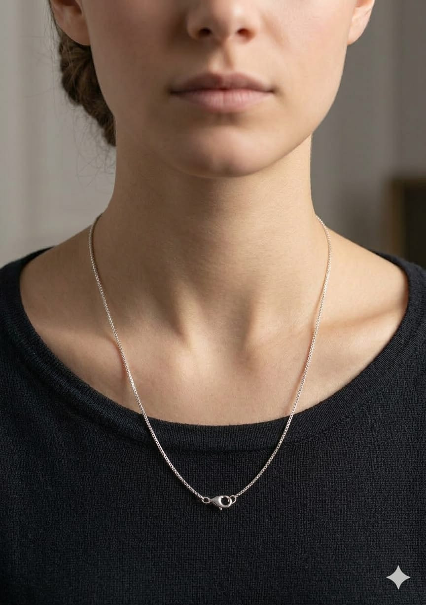 Crafted with a polished silver finish, the snake chain sits beautifully around the neck and is perfect to wear alone for a minimal style or paired with a pendant for a more personalized look. Its flexible and durable design ensures comfortable wear for everyday use.