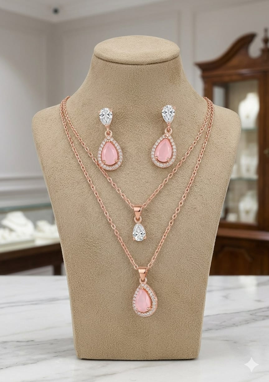 Matching set: double-layer necklace & teardrop earrings