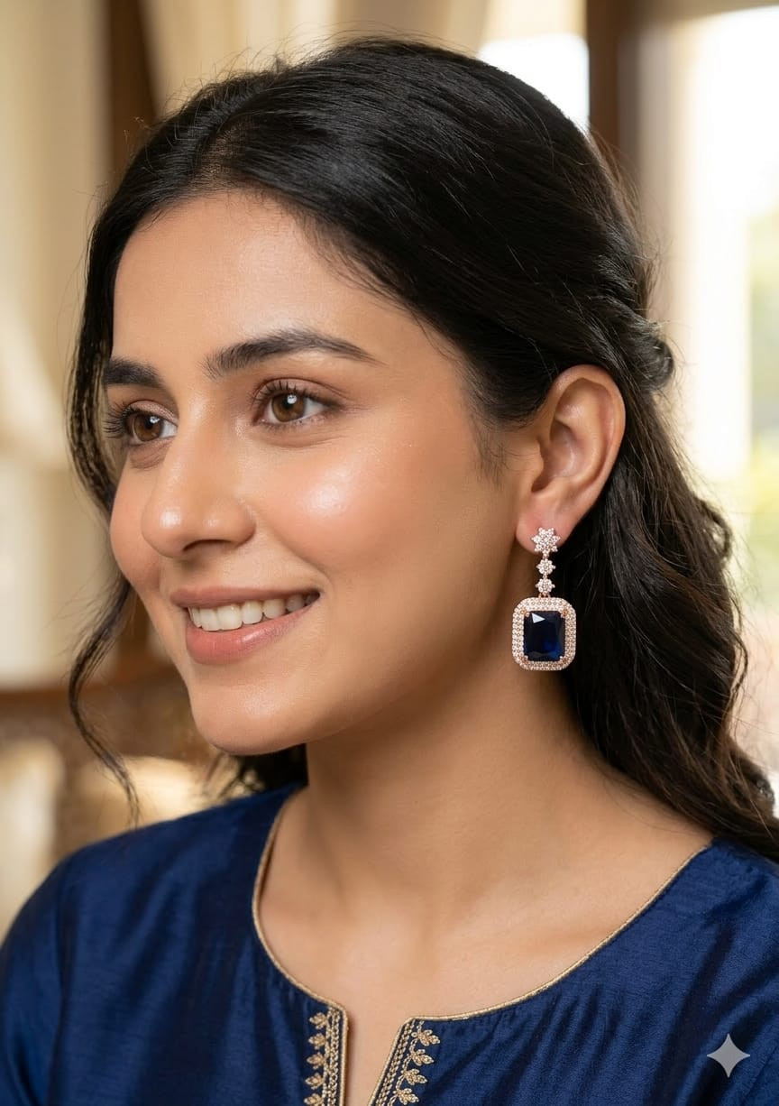 Add a pop of color and sophistication with these Sapphire Style Dangle Earrings. Featuring stunning sapphire-blue crystals in a graceful dangle design, these earrings catch the light beautifully, making them perfect for both formal occasions and everyday wear. Crafted with high-quality materials, they offer lasting shine and comfort, making them a stylish choice for gifting or personal use.