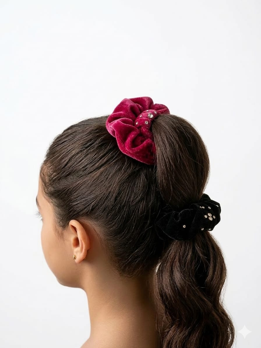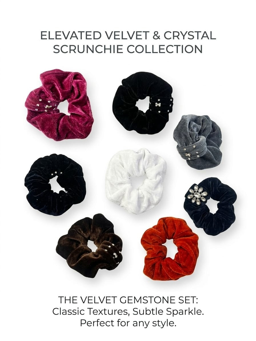 Elevate your everyday hairstyle with our premium Velvet Gemstone Collection. Perfectly blending luxury with comfort, these scrunchies are designed to add a royal touch to any look.