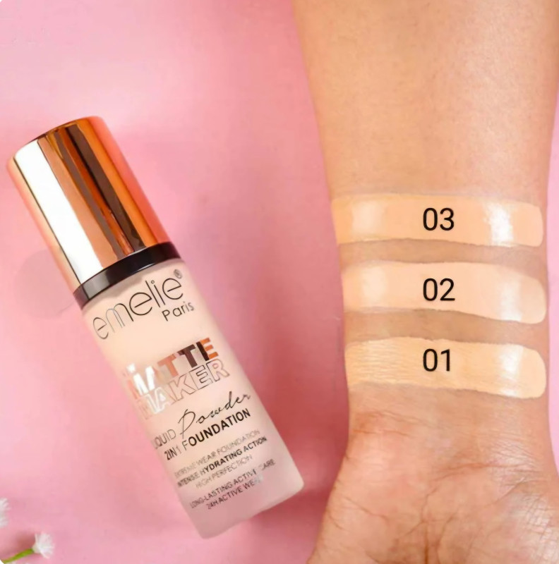 Get a flawless, smooth complexion with Emelie Paris Matte Foundation. This lightweight yet full-coverage foundation blends effortlessly into the skin, helping to even out skin tone while covering blemishes, dark spots, and imperfections.