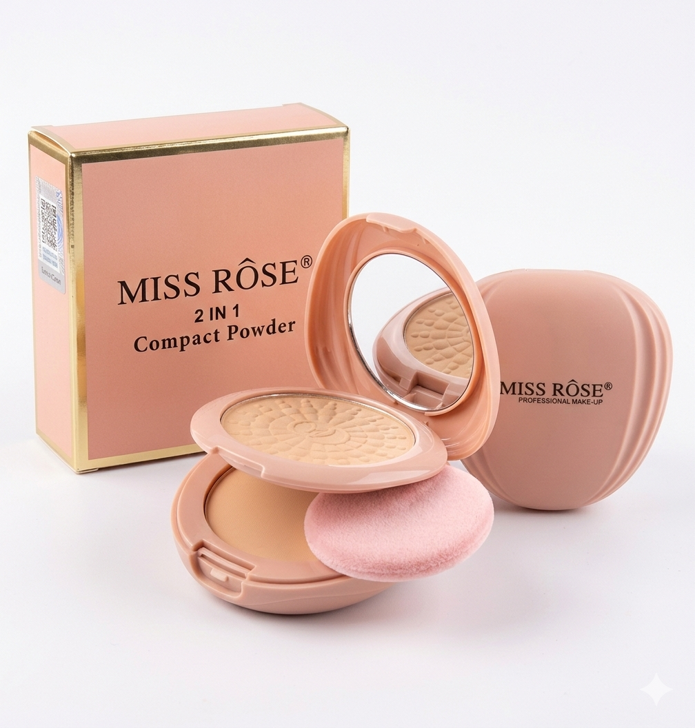 Miss Rose2 in 1 Compact Powder provides a perfect make-up finish and coverage. Perfectly adapts to the skin, giving it a matte, natural look. It easily spreads. Recommended for all skin types. The package was enriched with a sponge and a mirror.