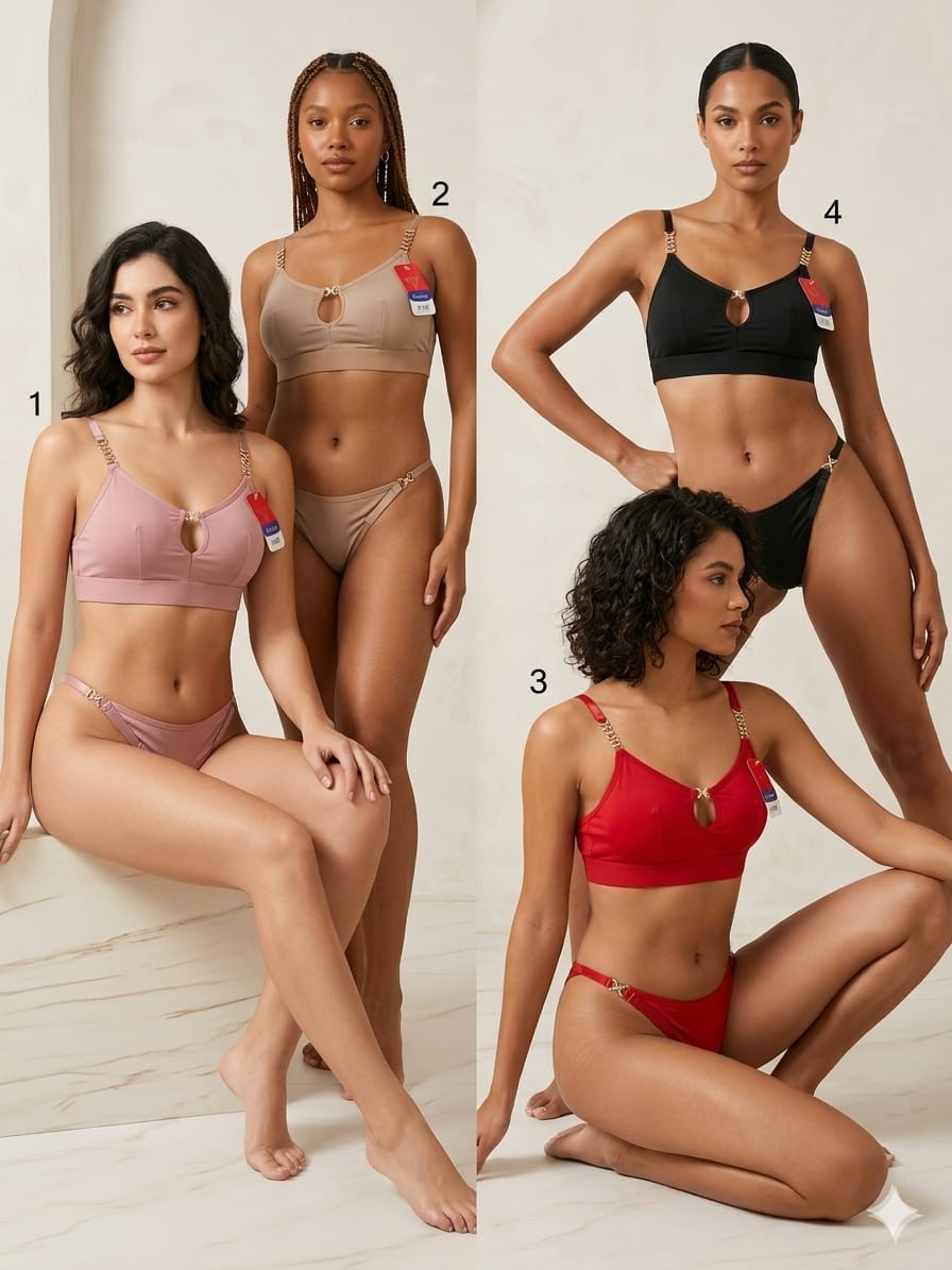Premium Elegant Lingerie Set is designed to combine luxury, comfort, and feminine style. This beautiful bra and panty set features a sophisticated design that enhances your natural shape while providing a comfortable fit for all-day wear. The soft and breathable fabric feels gentle on the skin, making it perfect for both special occasions and everyday elegance.