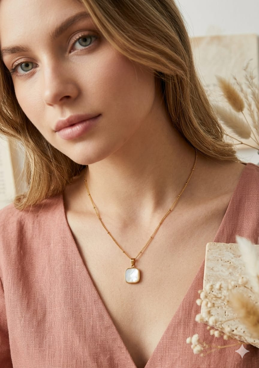 Add elegance and charm to your jewellery collection with this Square Pearl Pendant with Satellite Chain. Featuring a unique square-shaped pearl pendant paired with a delicate satellite chain, this necklace offers a modern yet classic look.